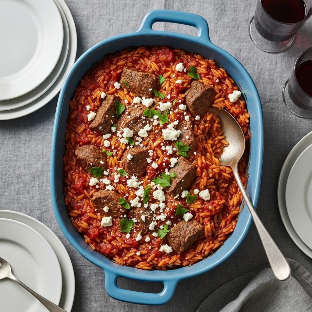 Beef Youvetsi is more than just a recipe; it’s an experience. It’s the aroma that fills your home, the anticipation of a shared meal, and the deep satisfaction of comfort food prepared with care. Each bite—a perfect combination of tender beef, al dente orzo, and a sauce rich with the history of Greek kitchens—is a reminder of how simple ingredients, given time and attention, can create something truly extraordinary. Whether for a quiet Sunday dinner or a celebration with loved ones, this dish is sure to become a cherished tradition.