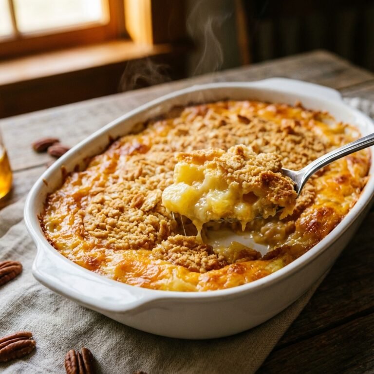 Old School Southern Pineapple Cheese Casserole (Sweet & Savory) Step into any Southern potluck, church supper, or holiday…